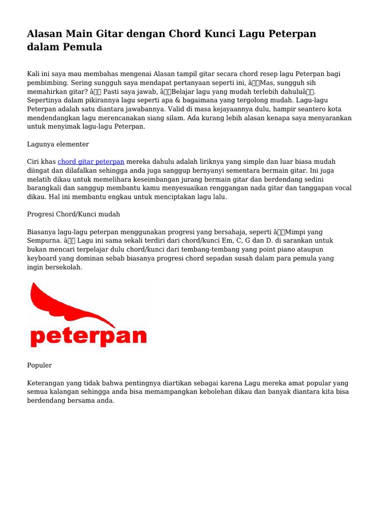 Alasan Main Gitar Dengan Chord Kunci Lagu Peterpan Dalam